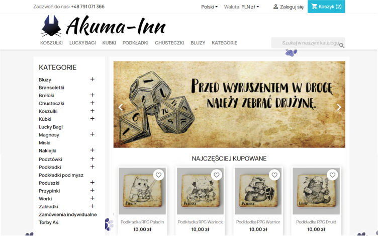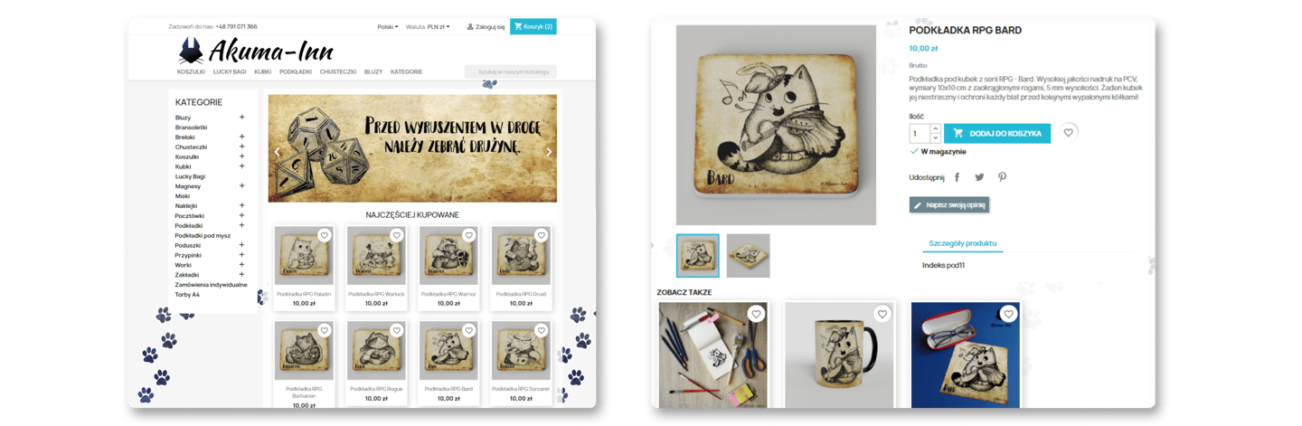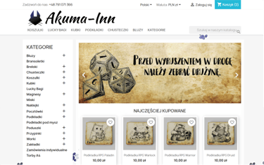 Akuma Inn is an online store offering popculture gadgets, like t-shirts, mugs and bags with fantasy, anime and sci-fi themes. Before 2023 client made about 30% of yearly income in in-person sales during various events. However due to health problems they aimed to switch to online sales exclusively and so it was crucial for them to improve the website's business potential. I was asked to help with page redesign and improving sales metrics from UX perspective.