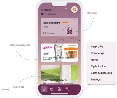 App was rated as aesthetic and intuitive, with an interface inviting to dive into more options. Users appreciated the step-by-step haircare guides and possibility to track progress with photos and notes.